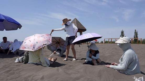 每年6月初至8月底,是新疆吐鲁番沙疗的黄金时节,众多游客和康养爱好者纷至沓来。